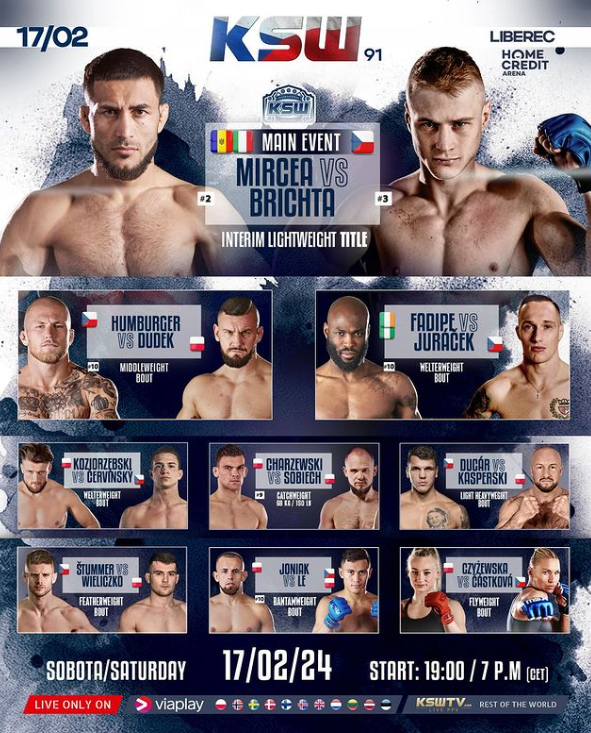 Okrem Brichtu sa v hlavnom predzápase predstaví aj Liberecký zástupca Dominik Humburger so skóre 4-1, ktorý sa po poslednej porážke, ktorú mu uštedril na turnaji KSW 86 Michał Michalski bude chcieť vrátiť späť na víťaznú vlnu proti Adrianovi Dudekovi so skóre 7-2, ktorý mal byť pôvodným súperom pre Hošeka, lenže potom čo sa Albert Odzimowski rozhodol odstúpiť zo zápasu reagovala organizácia KSW týmto krokom a zápas Hošeka bol preložený na ďalší turnaj KSW 92, kde však bude mať nového súpera, ktorého meno zatiaľ nevieme.