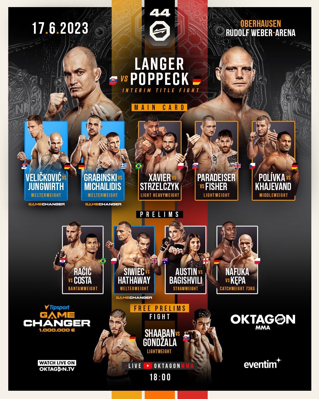 Součástí OKTAGONu 44 je i čtvrtfinále přelomového pyramidové turnaje nejlepších evropských MMA bojovníků welterové divize Tipsport Gamechanger o 1 milion EURO, do kterého jsou OKTAGONem v současnosti nasazeni právě Eckerlin s Jungwirthem.