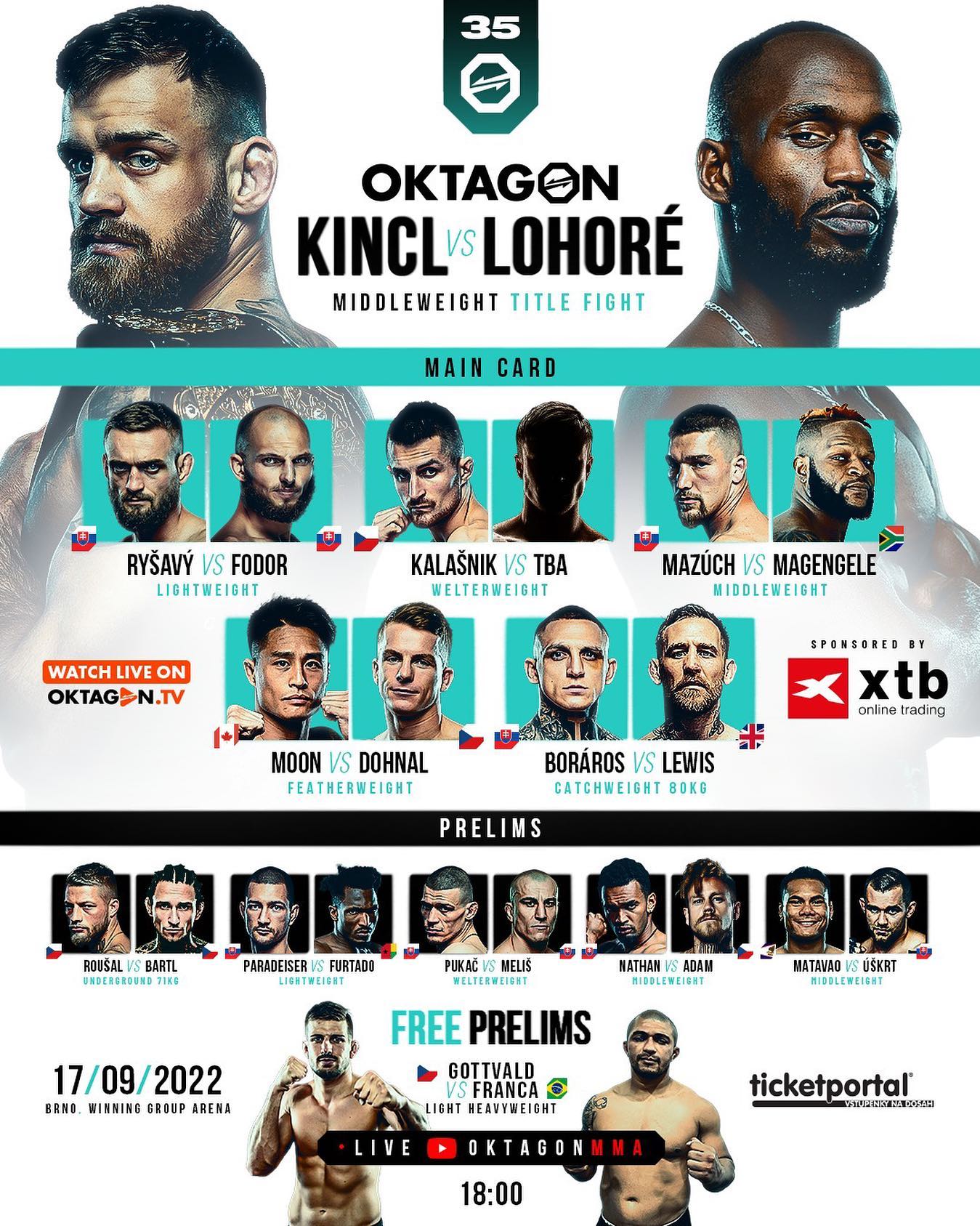 Svrhnout Kincla kráčí Alex Lohoré, pětinásobný champ organizací TMT, UCMMA, BAMMA a Fight Start Championship, který má zkušenosti i z předních světových klecí Bellatoru a Cage Warriors. O titul již jednou neúspěšně bojoval proti „Terminátorovi” Vémolovi. Má tak druhou možnost získat korunu šampiona. Další prohru v titulovém zápase už nemůže dopustit. Francouzský rváč je nyní v senzační formě, kdy v minulém zápase dominantně zastavil rozjetého Polívku už v 1. kole TKO a vysloužil si 2. výhru v řadě.