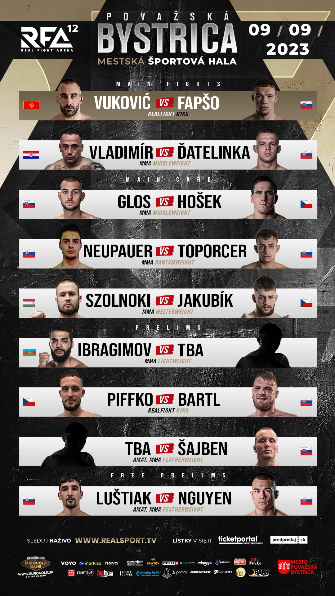 RFA premiérovo zavíta do Považskej Bystrice, kde sa pred domácim publikom predstavia najväčšie tamojšie hviezdy. Milan Ďatelinka v existenčnom zápase sa po troch prehrách v rade pokúsi vrátiť na víťaznú vlnu a Sebastián Fapšo má v pláne upraviť svoje skóre v rámci RFA na 2-1.