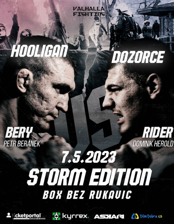 Organizácia VALHALLA FIGHTING chystá svoj ďalší turnaj v boxe bez rukavíc STORM EDITION , ktorý sa uskutoční už tento víkend 7.5 v STORM CLUB-PRAHA 3 ŽIŽKOV ,turnaj ponúkne množstvo skvelých a tvrdých zápasov, hlavný zápas turnaja sa však bude niesť v znamení súboja Dozorce vs Hooligan. Diváci sa postupne môžu tešiť na 7 zápasov poďme si postupne prejsť ,čo nás na tomto turnaji čaká